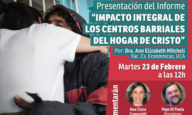Este martes 23 de febrero a las 12 se dará a conocer el informe “Evaluación de Impacto Integral Centros Barriales del Hogar de Cristo”, una iniciativa pastoral de los curas villeros en las periferias.