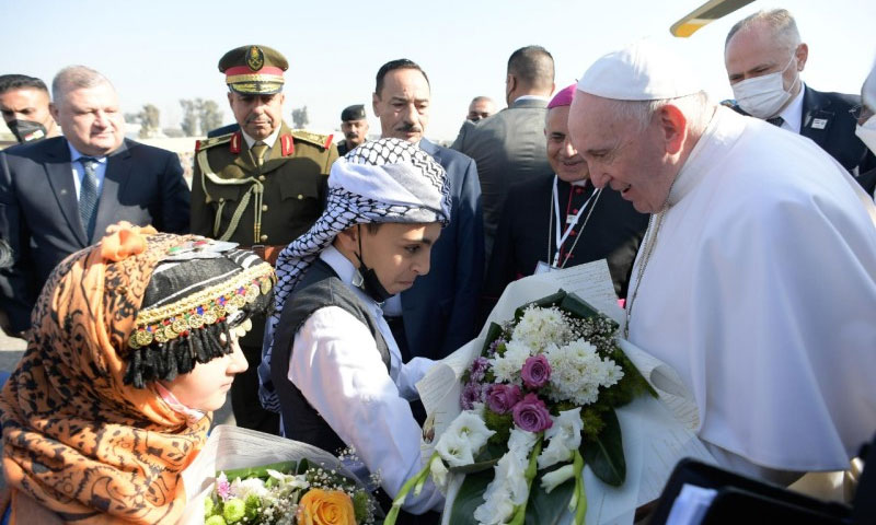 “Incluso ante la devastación que causa el terrorismo y la guerra podemos ver, con los ojos de la fe, el triunfo de la vida sobre la muerte. Tienen ante ustedes el ejemplo de sus padres y de sus madres en la fe, que adoraron y alabaron a Dios en este lugar. Perseveraron con firme esperanza en su camino terreno, confiando en Dios que nunca defrauda y que siempre nos sostiene con su gracia. La gran herencia espiritual que nos han dejado continúa viviendo en ustedes. Abracen esta herencia. Esta herencia es su fortaleza. Ahora es el momento de reconstruir y volver a empezar, encomendándose a la gracia de Dios, que guía el destino de cada hombre y de todos los pueblos. ¡No están solos! Toda la Iglesia está con ustedes, por medio de la oración y la caridad concreta. Y en esta región muchos les han abierto las puertas en los momentos de necesidad”.