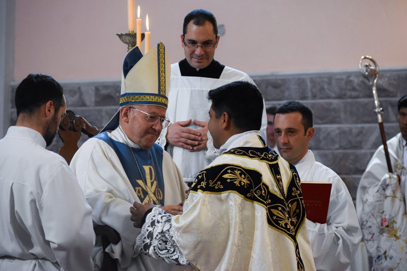A las 10 de la mañana comenzó la Santa Misa de Ordenación en la Catedral San Rafael Arcángel presidida por Monseñor Eduardo Maria Taussig. Allí la familia de Matias, junto a amigos y vecinos de su distrito, la Villa 25 de Mayo, lo acompañaron en tan significativo momento.