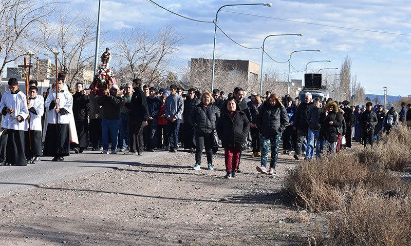 Desde las 16 hs familias completas se reunieron en Av. Rawson y Rivadavia para comenzar la procesión junto a la imagen del Santo.