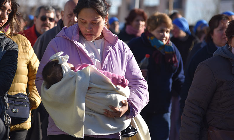Alrededor de dos mil personas peregrinaron junto a la imagen hasta la capilla ubicada en Av. Rawson 2.100. Niños, jóvenes,adultos y abuelos acompañaron la peregrinación rezando y cantando.