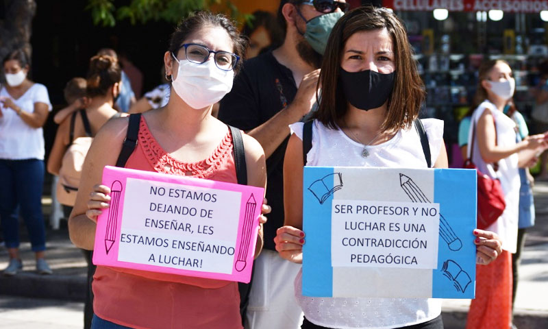 Muchas escuelas públicas de San Rafael hicieron un paro y manifestación en el microcentro de la ciudad. Mirá la galería con las fotos más destacadas.