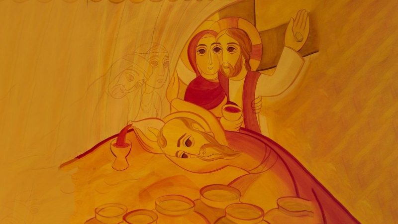 “El fondo de la imagen es el episodio de las bodas de Caná de Galilea. A la izquierda, los esposos aparecen cubiertos por un velo. El sirviente que sirve el vino tiene el rostro con los rasgos de San Pablo, según la antigua iconografía cristiana. Es él quien descorre el velo con su mano y, refiriéndose al matrimonio, exclama: ¡Este es un gran misterio; y yo digo que se refiere a Cristo y a la Iglesia!”, es la descripción de la imagen oficial del X Encuentro Mundial de las Familias, que tendrá su celebración central en Roma del 22 al 26 de junio de 2022, y que fue creada por el Padre Marko Ivan Rupnik, artista, teólogo y director del Centro Aletti.