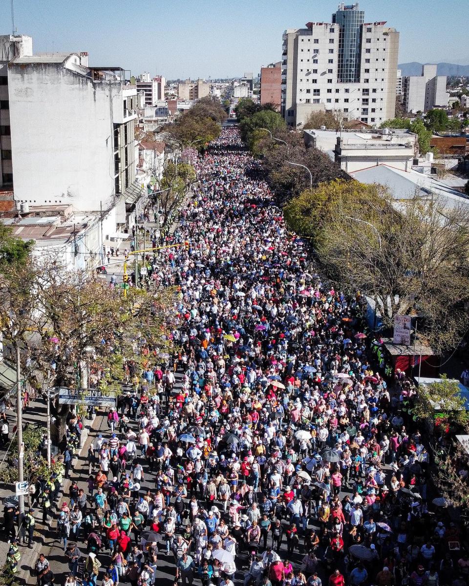 Una multitud de fieles participó este domingo en la capital salteña de la procesión del Señor del Milagro y la Virgen del Milagro, la celebración religiosa más convocante del Noroeste Argentino (NOA).