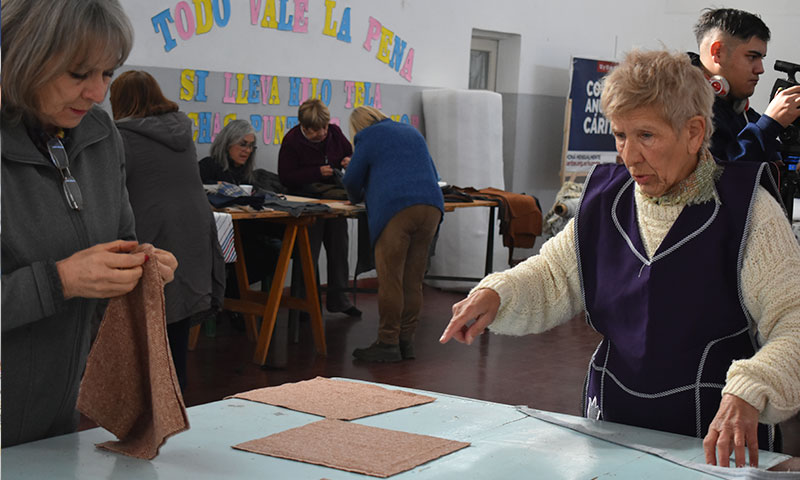 “Después de dos años sin realizarla, nos encontramos nuevamente realizando esta jornada, confeccionando los acolchados para los más necesitados”, expresó Estela Torres de Ruiz, quien está a cargo del programa Ayuda Inmediata de Cáritas.